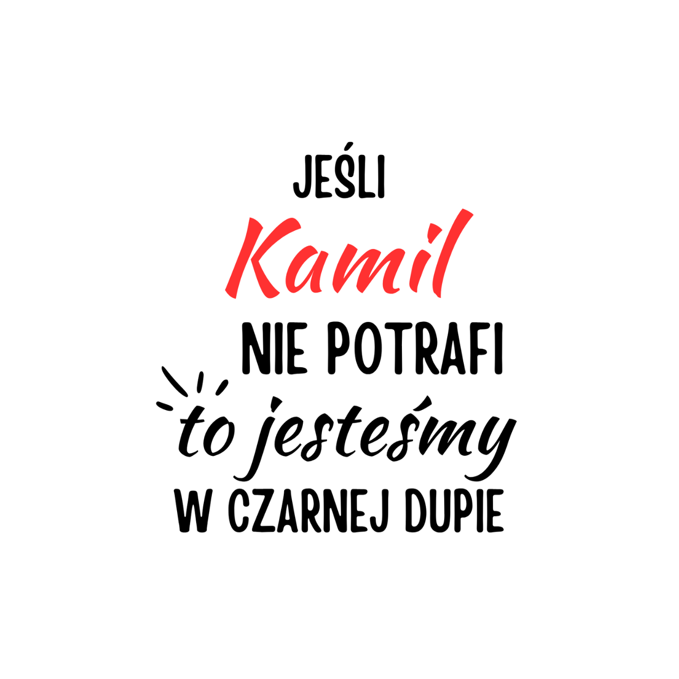 Kubek z dowolnym imieniem „Jeśli nie potrafi to jesteśmy w czarnej dupie” to personalizowany gadżet z mocnym, humorystycznym przekazem, idealny dla osób z dystansem i specyficznym poczuciem humoru. Wykonany z wysokiej jakości ceramiki, zapewnia trwałość oraz nadruk odporny na mycie i codzienne użytkowanie. Możliwość dodania imienia sprawia, że kubek staje się unikalnym prezentem dla znajomego, współpracownika lub bliskiej osoby. To świetny wybór na upominek, który wyróżnia się oryginalnością i na pewno wywoła uśmiech.