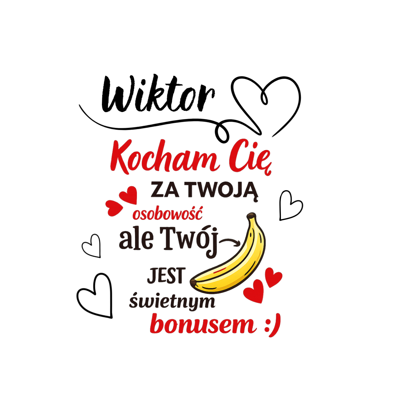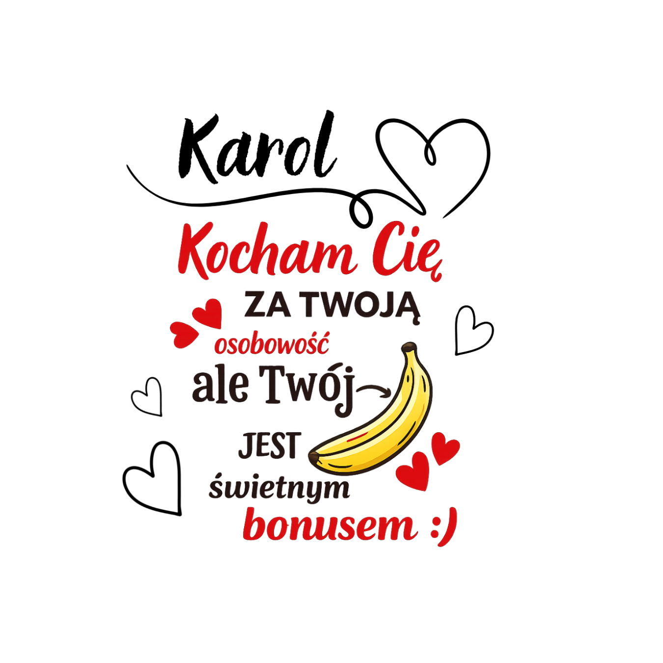Kubek z napisem „Kocham Cię za twoją osobowość, ale twój banan jest świetnym bonusem” to strzał w dziesiątkę! Ten personalizowany kubek to świetny wybór dla chłopaka, męża i par z dystansem do siebie. Świetnie sprawdzi się na walentynki, rocznicę, czy urodziny.