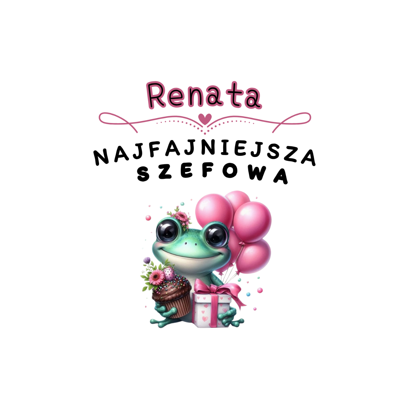 Uroczy kubek z napisem „Najfajniejsza Szefowa” i możliwością dodania imienia. Idealny prezent dla kogo szukasz wyjątkowego upominku dla swojej szefowej – na urodziny, imieniny, Dzień Kobiet czy jako podziękowanie. Trwały nadruk, piękna grafika z żabką i balonami oraz praktyczne zastosowanie sprawiają, że to prezent, który zawsze wywoła uśmiech.