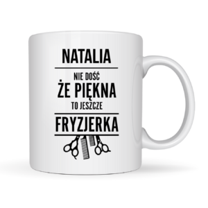 Kubek z dowolnym imieniem ,,Piękna fryzjerka”