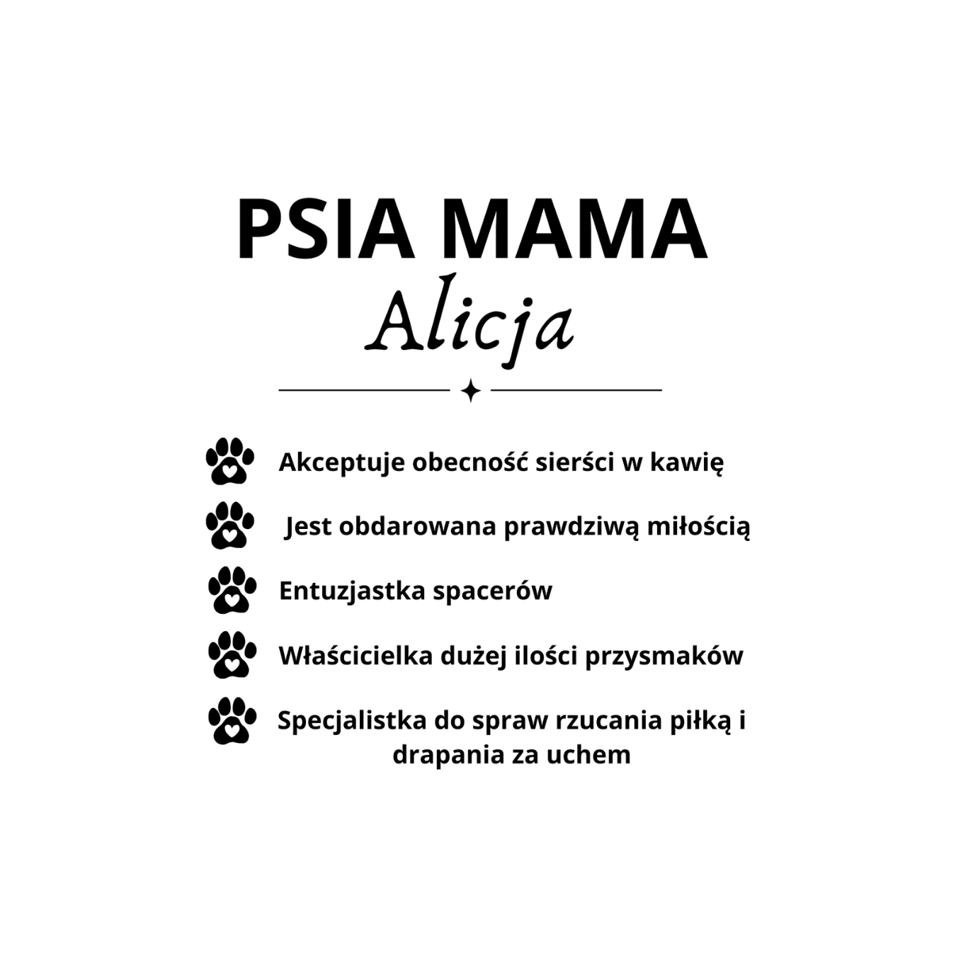 Kubek z napisem „Psia mama” to idealny wybór dla każdej kobiety, która kocha swojego pupila jak członka rodziny. Personalizacja dowolnym imieniem sprawia, że kubek staje się wyjątkowym i osobistym dodatkiem na co dzień. Doskonale sprawdzi się podczas porannej kawy, herbaty czy wieczornego relaksu z ukochanym psem u boku. To także świetny pomysł na prezent dla każdej dumnej psiej mamy.