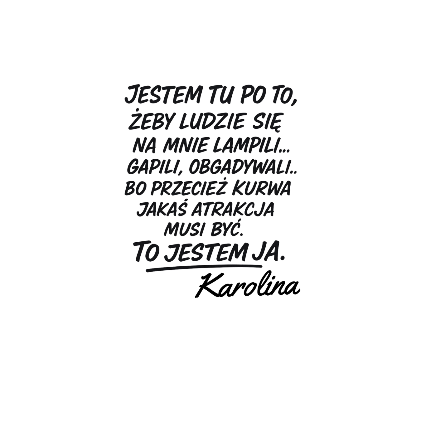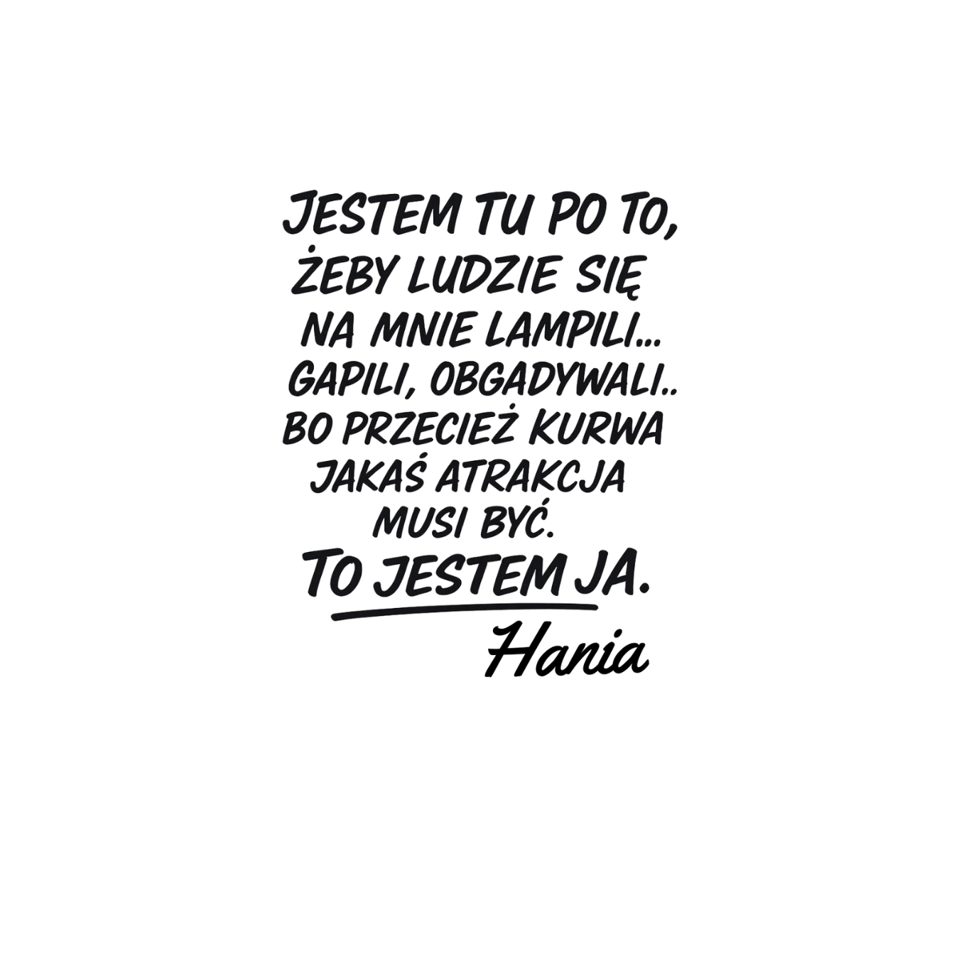 Ten kubek to propozycja dla osób, które lubią być w centrum uwagi i nie boją się odważnych słów. Napis „Jestem tu po to, żeby ludzie się na mnie lampili, gapili i obgadywali, bo przecież jakaś atrakcja musi być – to jestem ja, [Twoje imię]” podkreśla dystans do siebie i poczucie humoru. To idealny gadżet dla kogoś, kto z przymrużeniem oka podchodzi do plotek i zawsze przyciąga spojrzenia. Taki kubek świetnie sprawdzi się jako zabawny prezent, który wywoła uśmiech i stanie się tematem rozmów.