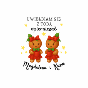Ten świąteczny kubek z uroczymi pierniczkami i napisem „Uwielbiam się z Tobą opierniczać” to idealny prezent dla przyjaciółki, z którą możesz gadać bez końca, śmiać się do łez i lenić się godzinami. Sprawdzi się na Mikołajki, pod choinkę, na Święta Bożego Narodzenia albo jako drobny upominek, który pokaże, jak bardzo cenisz Waszą relację. Personalizacja imion sprawia, że kubek staje się wyjątkową pamiątką – idealną do zimowej herbaty, gorącej czekolady czy wspólnej kawy przy ploteczkach.