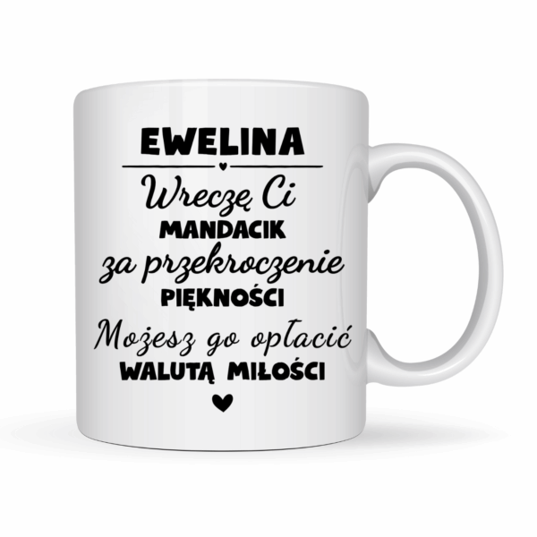 Szukasz oryginalnego i zabawnego prezentu dla ukochanej osoby? Kubek z napisem „Wręczę Ci mandacik za przekroczenie piękności” to idealny wybór!