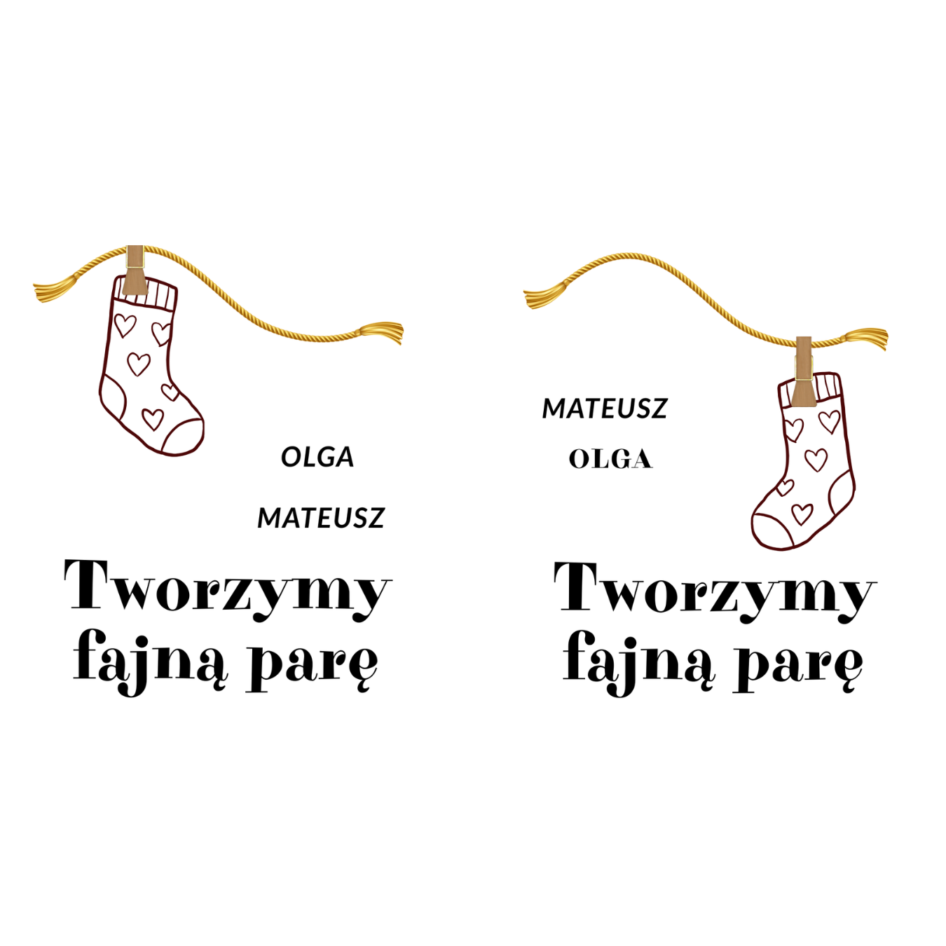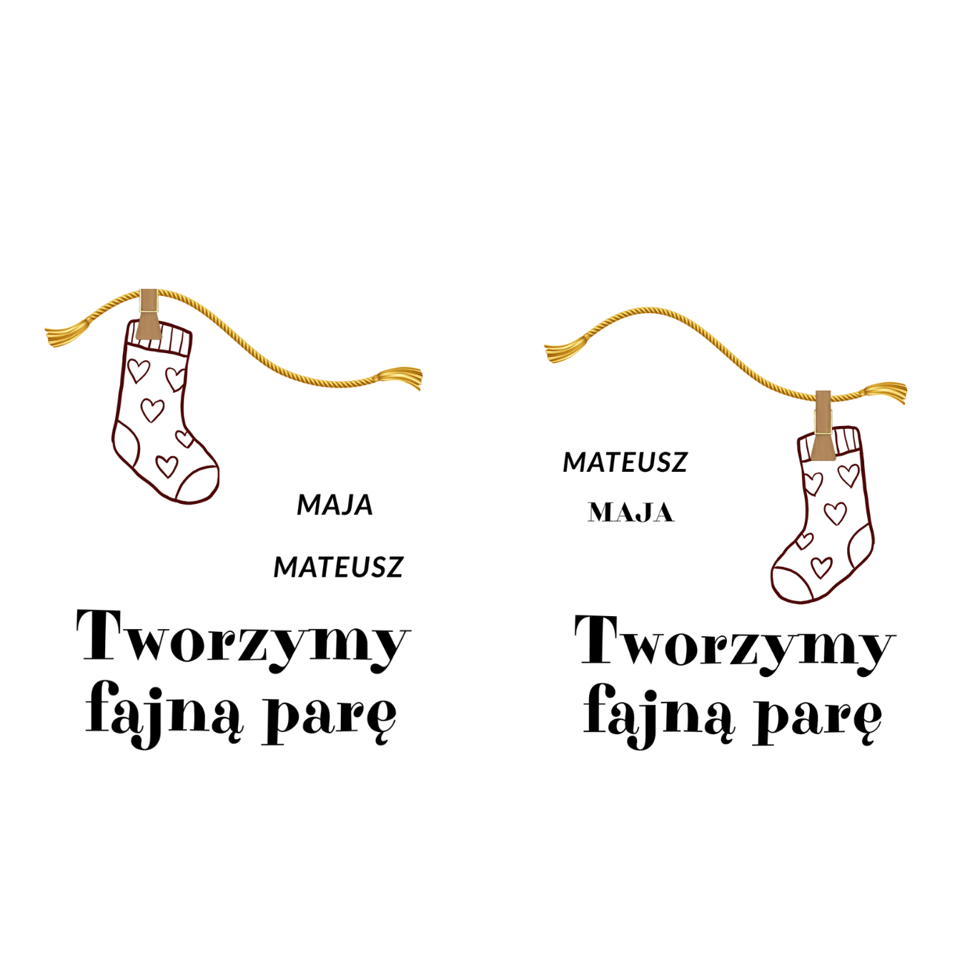 - Możliwość dodania do kubka dowolnych imion (np. Imię 1- Maja, Imię 2- Karol itp. )
